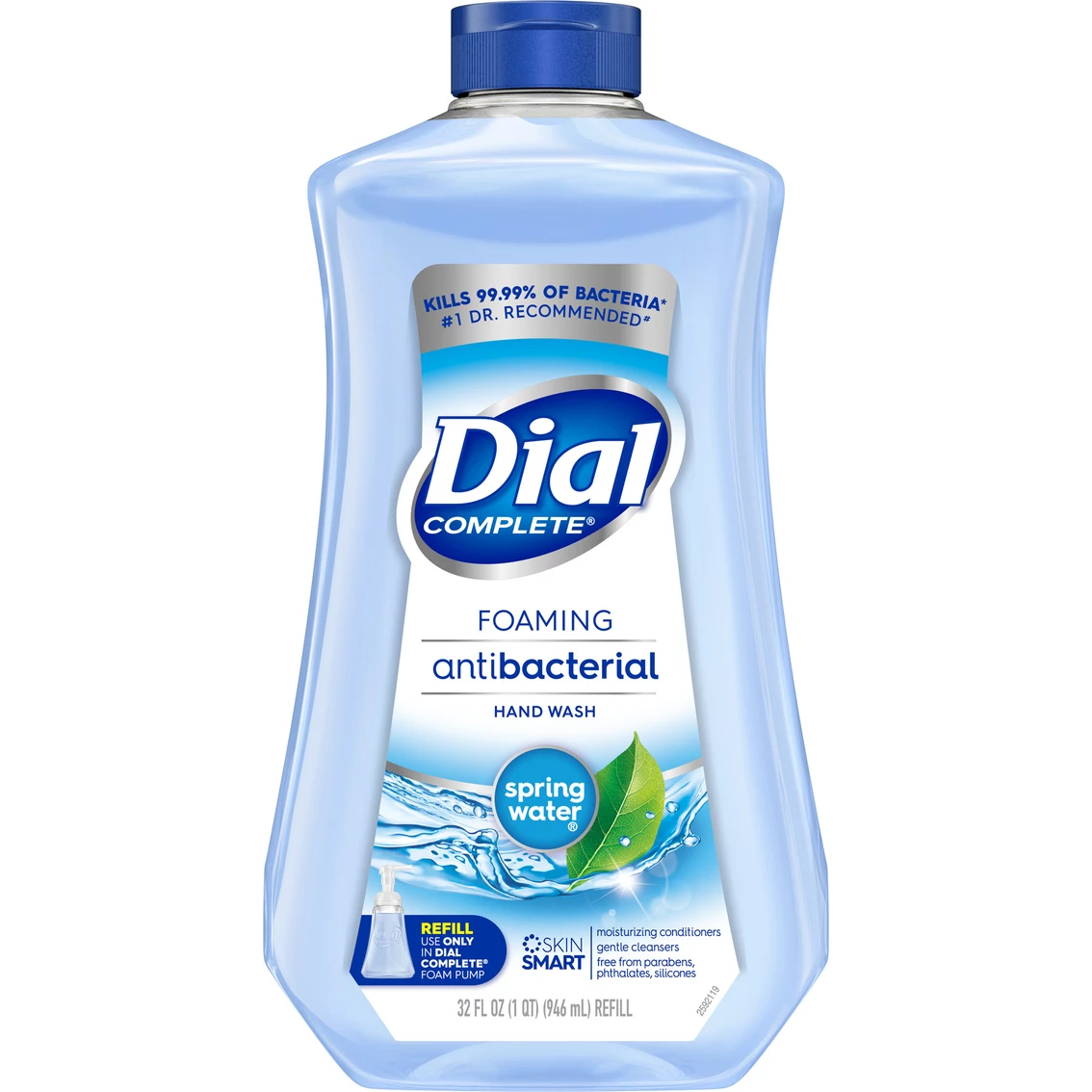 Find refreshment in an anti-bacterial hand wash from Dial that removes dirt and germs while conditioning skin. Feel the sensation of dipping your hands into a natural spring for an invigorating clean with this Dial Complete Anti-Bacterial Spring Water Foaming Hand Wash Refill. Formulated with anti-bacterial ingredients that’s tough on germs but formulated to be gentle on your delicate hands with a luxurious, creamy foaming formula.