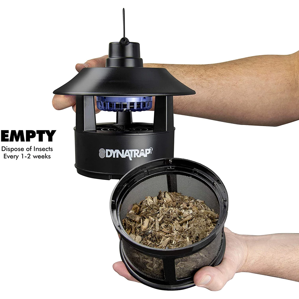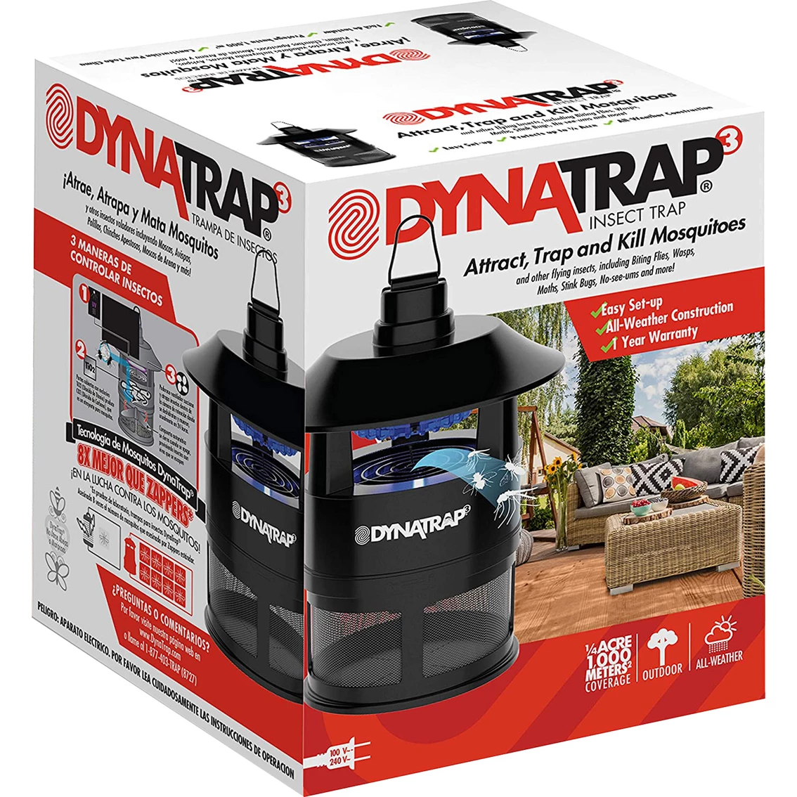 Outdoor insect trap by DynaTrap provides three layers of protection against flying pest insects. UV light and whisper quiet fan attract and trap insects without zapping. Durable, lightweight and portable design allow for easy set up and outdoor use. Effectively protects up to 1/4 acre of your property.