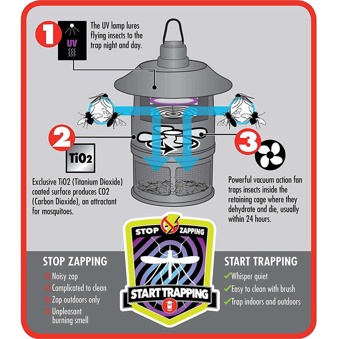 - No expensive attractant or propane required